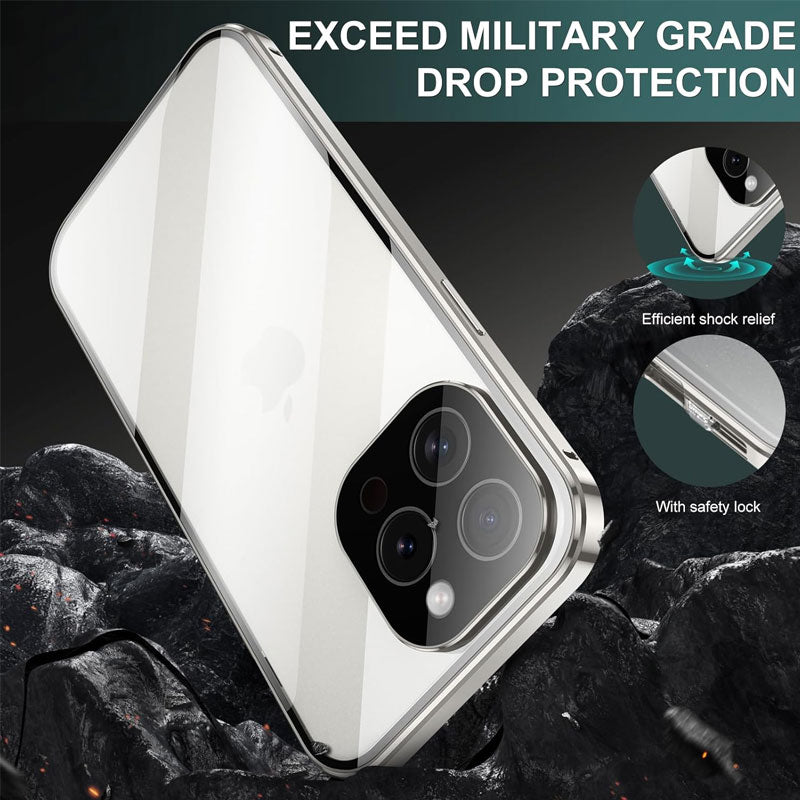 Sie möchten eine Handytasche, die sowohl den Einblick verhindert als auch Ihr Handy in alle Richtungen schützt? Die Magneto-Telefonhülle verwendet doppelseitiges Glas und einen Metallrahmen zum Schutz vor Stürzen, eine verbesserte starke magnetische Adsorption und ein Sicherheitsschloss, damit sich Ihr Telefon sicher fühlt!