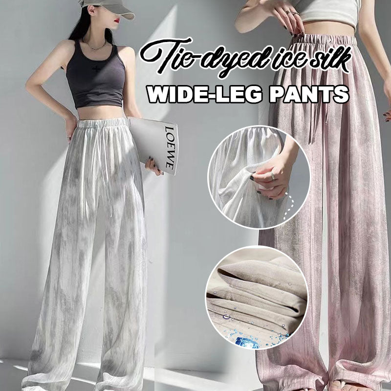 Batikfarbene Eis-Seidenhose mit weitem Bein🍃