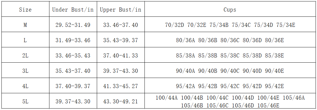 Kopstørrelser: A, B, C, D, DD (E), DDD (F),DDDD (G),DDDDD (H)