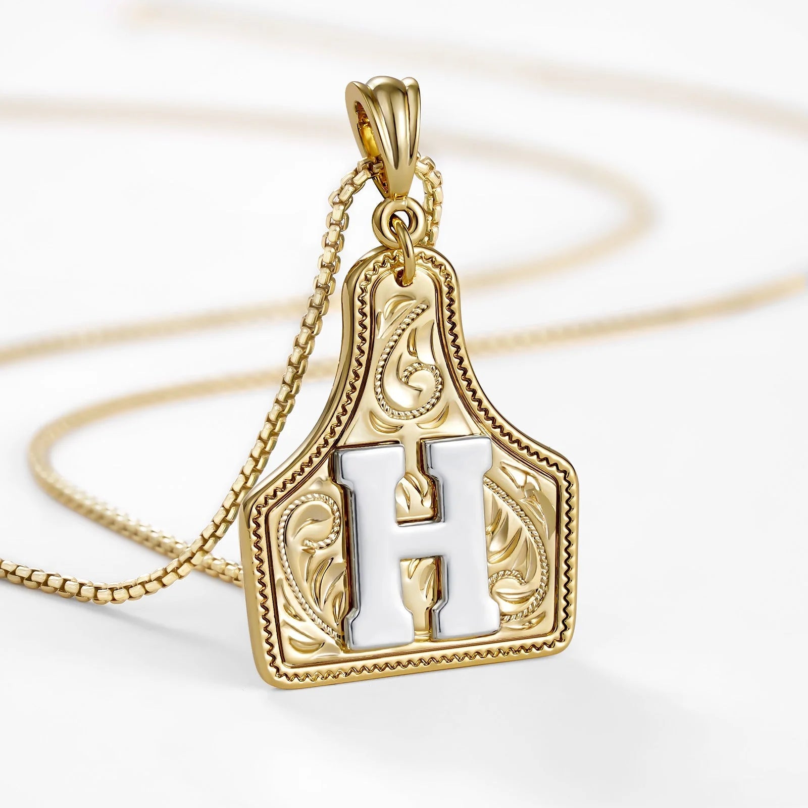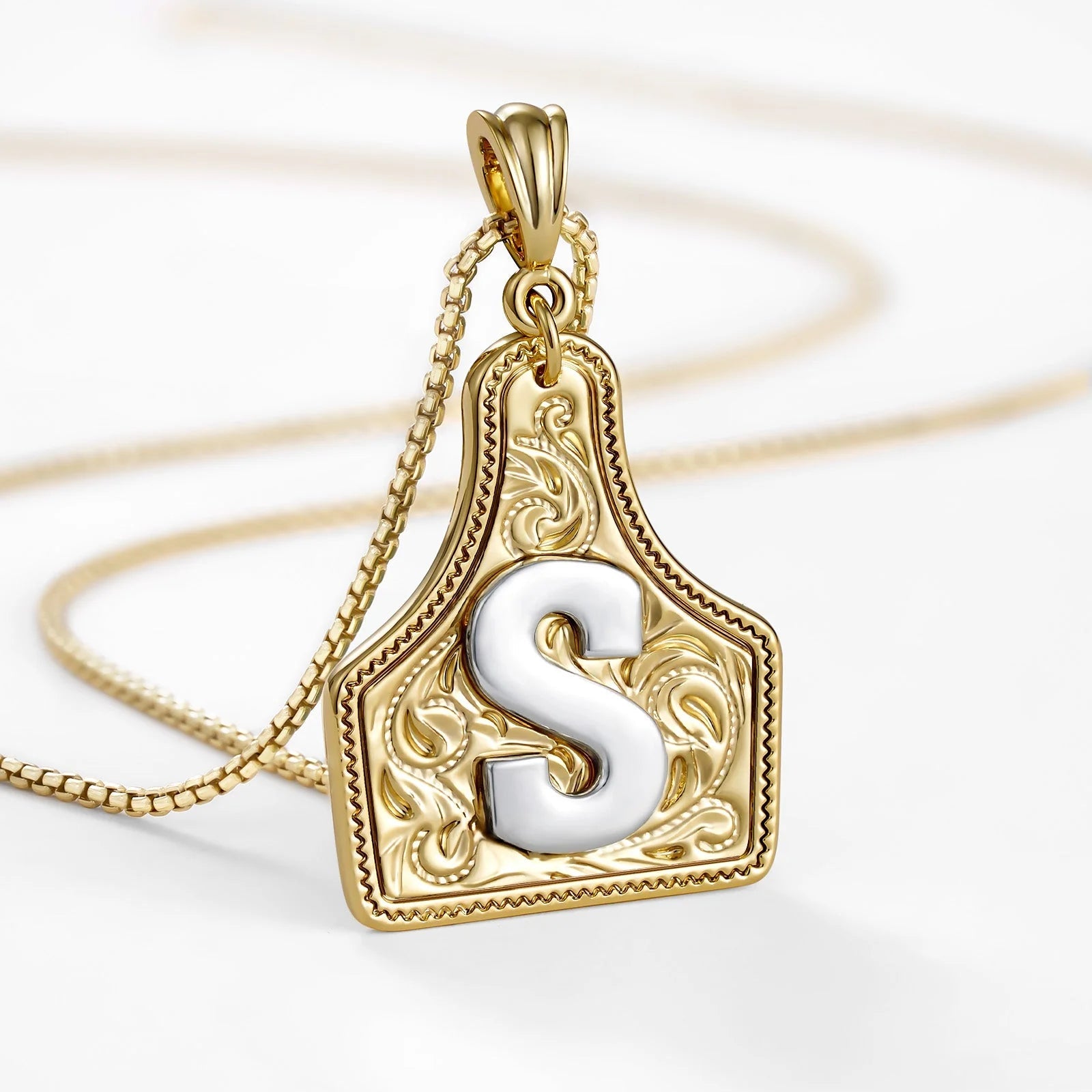 Midtpunktet er et dristig, gullfarget initialsmykke designet for å fange opp hvert eneste lysstråle. Overflaten har en ru, diamantslipt tekstur som etterligner glitringen fra knuste edelstener uten behov for skjøre krystaller. Det skaper en fantastisk glitrende effekt som skiller seg ut mot huden, og gir et personlig preg som gjør det til et ideelt minne for en bursdag eller milepælfeiring.