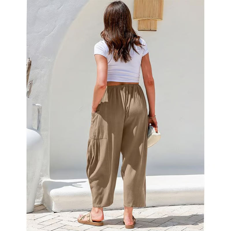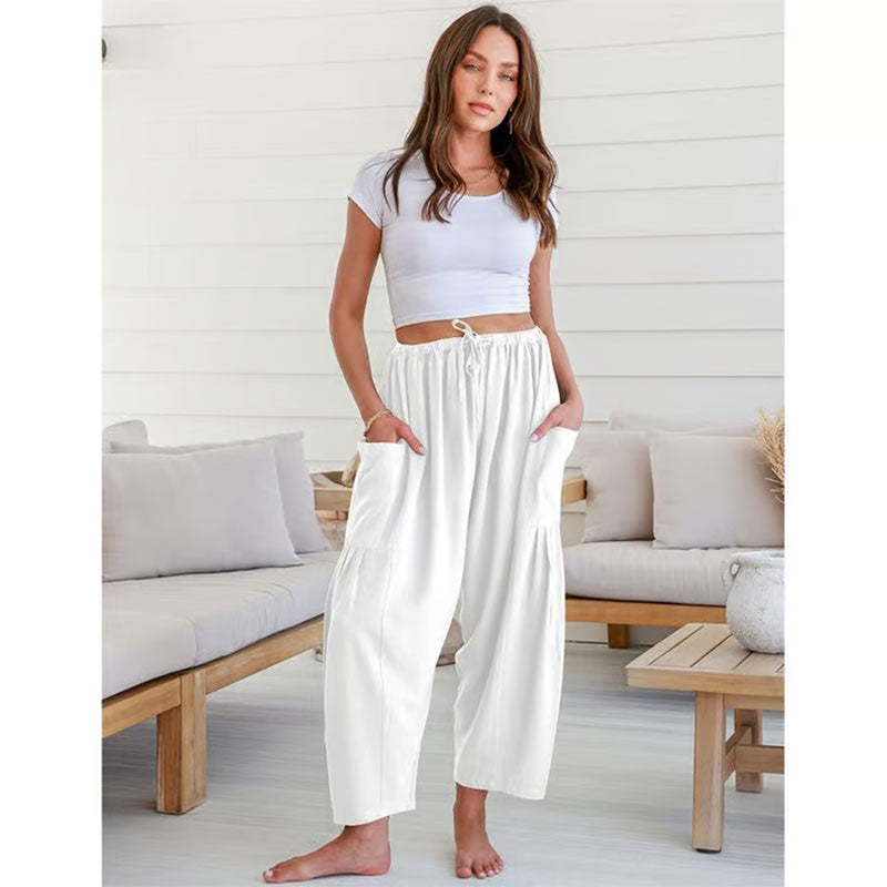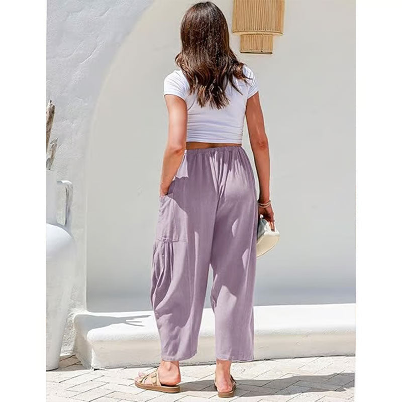 - 1 x Damen Leinenhose mit weitem Bein und Tasche