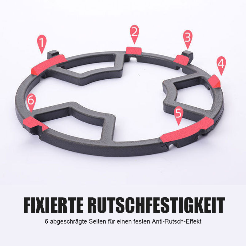 Rutschfeste Konstruktion: Die Halterung ist so gestaltet, dass sie sicher und fest auf dem Herdgitter sitzt. Mit sechs schrägen Kontaktflächen hält sie Ihre Töpfe und Pfannen sicher in Position.