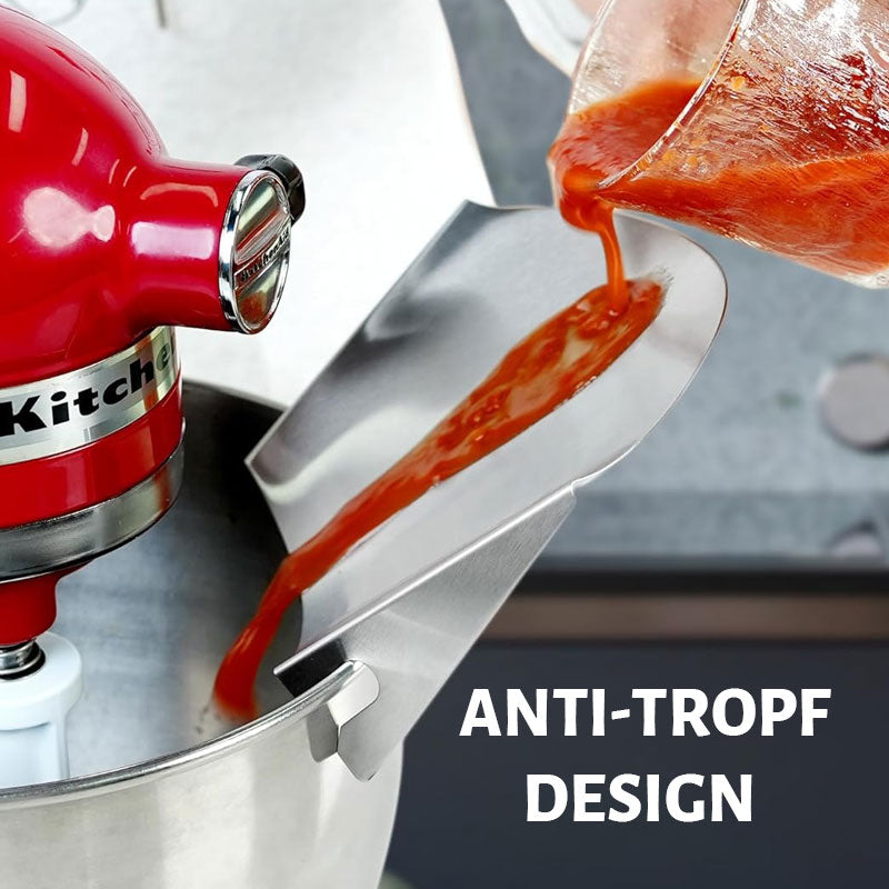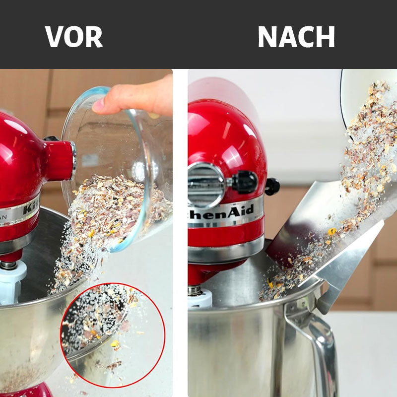✅ Anti-Tropf-Design – Speziell geformte Seitenflügel sorgen dafür, dass Eier, Mehl oder Flüssigkeiten sauber und kontrolliert in die Rührschüssel gelangen.