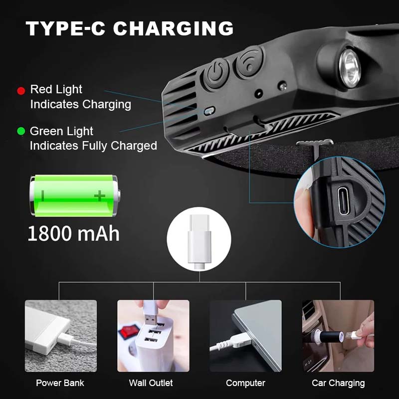 - 1 x Wiederaufladbare Sensor-Stirnlampe