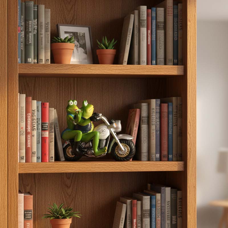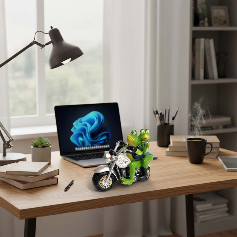 - 🎨 Detailreich gestaltet: Feine Gravuren am Motorrad, lebendige Kleidung der Frösche & kleine Accessoires wie ein Handy 📱