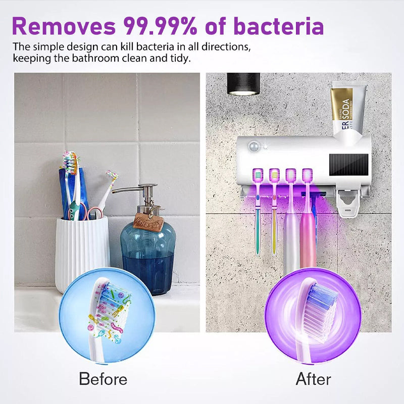 Möchten Sie Ihre Zahnbürsten sauber und bakterienfrei halten? Mit unserem UV-Sterilisationszahnbürstenhalter erreichen Sie ein hohes Maß an Hygiene und genießen ein einfaches und modernes Design, das perfekt in Ihr Badezimmer passt. 🚿✨