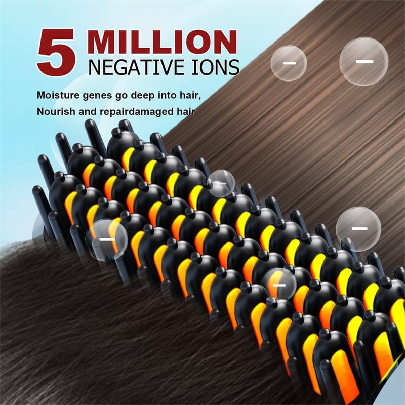Die Bürste des Haarglätters setzt während des Erhitzens 5000000 negative Ionen frei, die leicht in die Spalten Ihres Haarkerns eindringen können, Ihr Haar von innen heraus reparieren und Ihrem Haar einen gesunden, glänzenden Look ohne Frizz verleihen. Mehrere Temperatureinstellungen für alle Haartypen, wie dickes, feines, kurzes (mindestens 4 Zoll), langes, dünnes oder dickes Haar und Perücken.